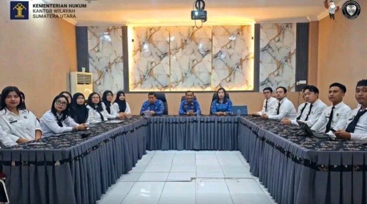 TIMELINES INEWS INVESTIGASI, Medan Penutupan Pelatihan Dasar (Latsar) CPNS Golongan III Kementerian Hukum Tahun 2025 resmi dilaksanakan pada Senin, 17 November 2025. Kegiatan diselenggarakan secara hybrid, menghubungkan peserta di pusat melalui Zoom Meeting dengan pelaksanaan di daerah, termasuk jajaran Kantor Wilayah Kementerian Hukum Sumatera Utara yang mengikuti kegiatan dari Ruang Rapat Lantai 4 Kanwil Kemenkum Sumut, Senin (17/11/2025).