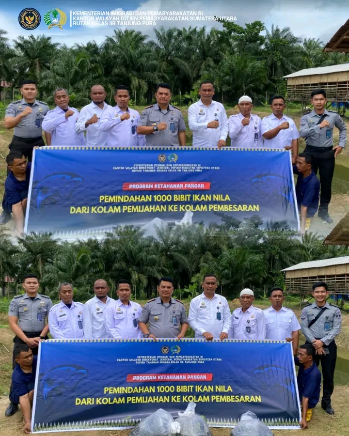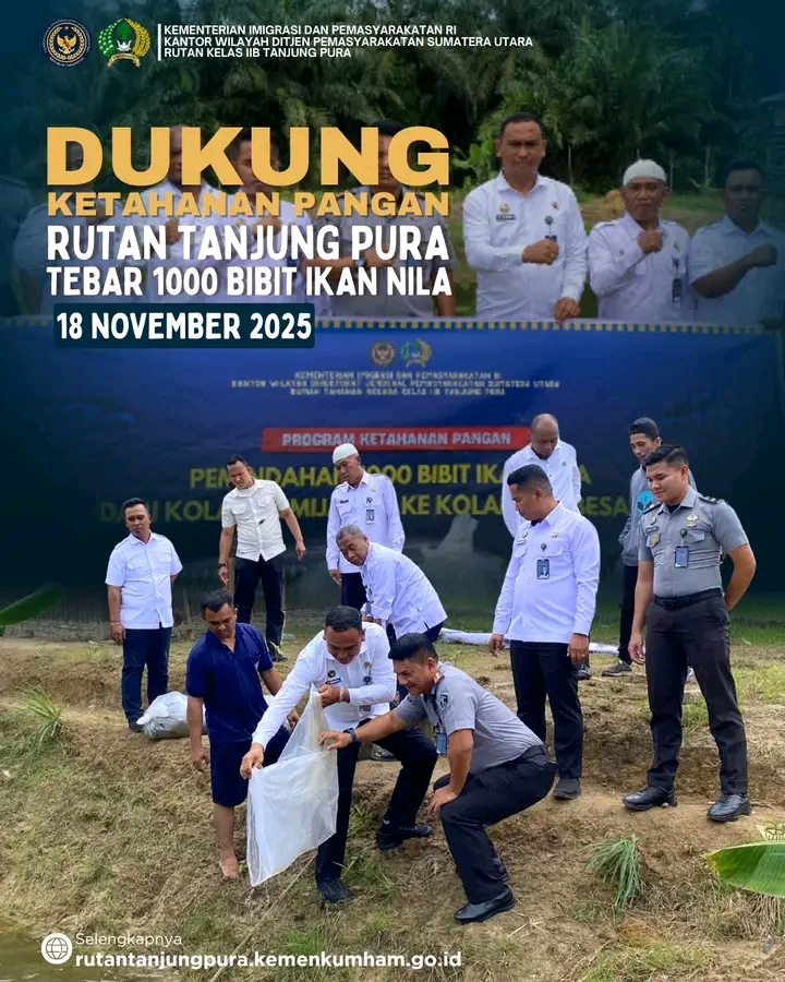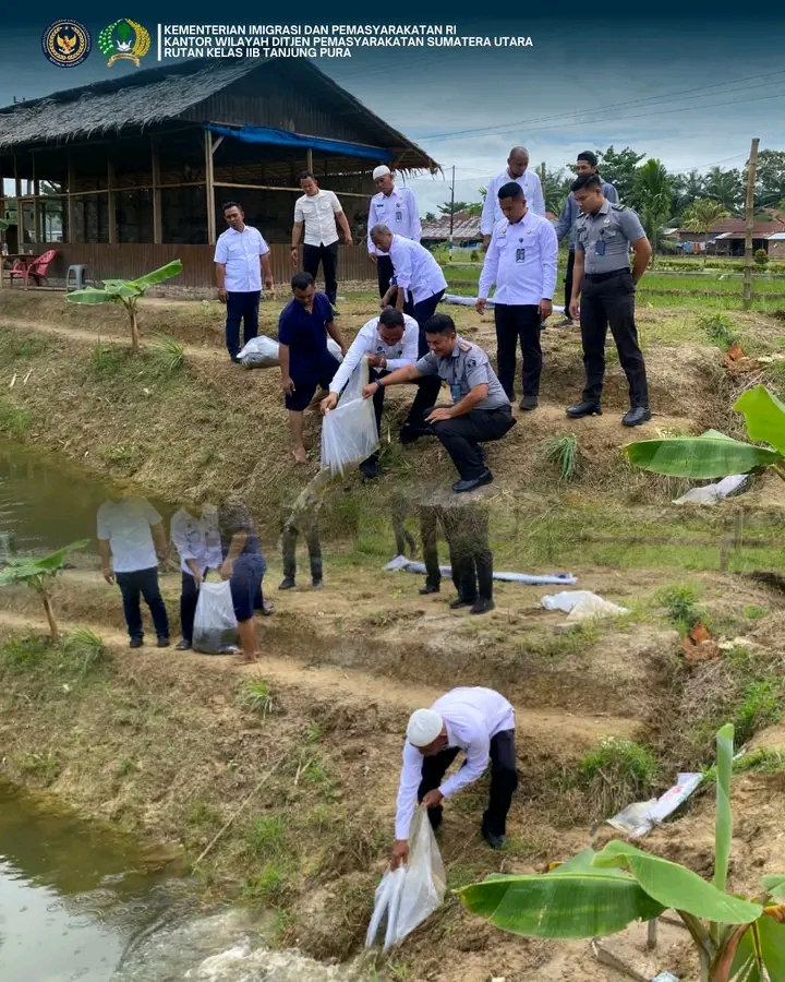 TIMELINES INEWS INVESTIGASI, Langkat Rumah Tahanan Negara Kelas IIB Tanjung Pura berkomitmen terus dalam mendukung program ketahanan pangan nasional melalui program pembinaan kemandirian warga binaan. Salah satunya yakni dengan melaksanakan kegiatan penebaran bibit ikan nila sebanyak 1000 ekor. Selasa (18/11)