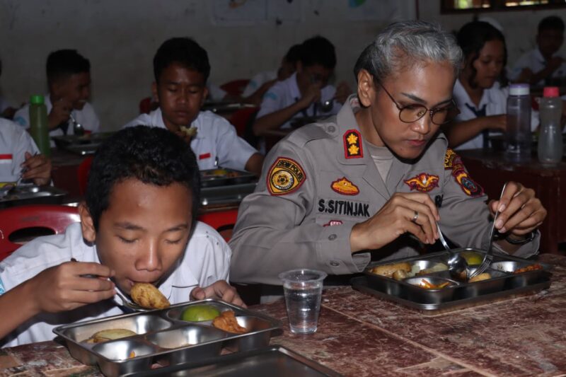 TLii|SUMUT|SIANTAR|Kapolres Pematangsiantar AKBP Sah Udur T.M. Sitinjak SH. SIK. MH melakukan pengecekan pendistribusian Makanan Bergizi Gratis (MBG) di SMP Negeri 1, Jalan Merdeka Kelurahan Pardomuan Kecamatan Siantar Timur Kota Pematangsianțar, pada hari Rabu 5 November 2025 siang pukul : 11.00 Wib.