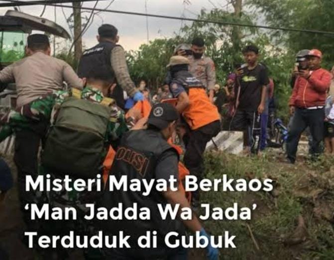 Merasa curiga, Sujana kemudian mengajak beberapa warga lain untuk memeriksa gubuk tersebut. Saat pintu gubuk dibuka, warga mendapati sesosok tubuh yang sudah tidak bernyawa dan dalam kondisi menggantung menggunakan tali berwarna hitam. Mayat tersebut diduga telah berada di lokasi selama beberapa hari, mengingat kondisinya yang mulai membusuk.