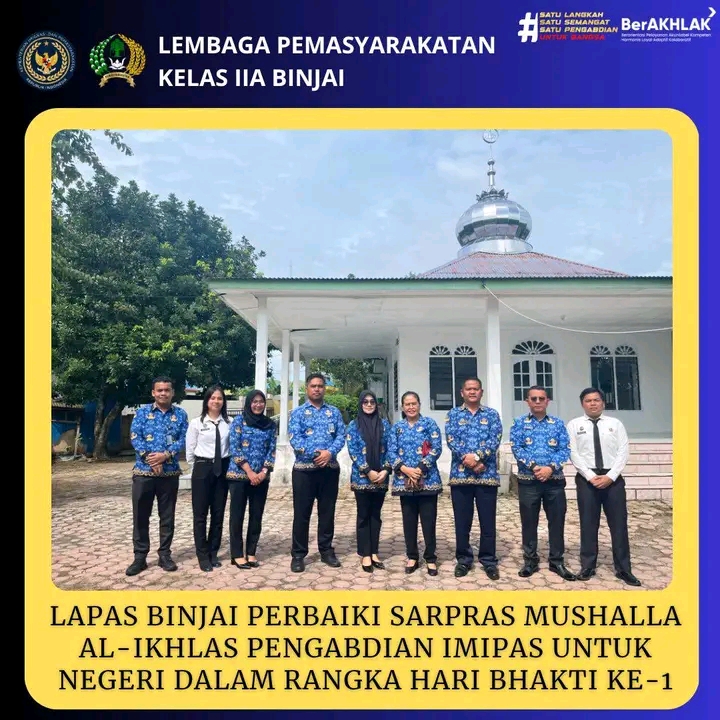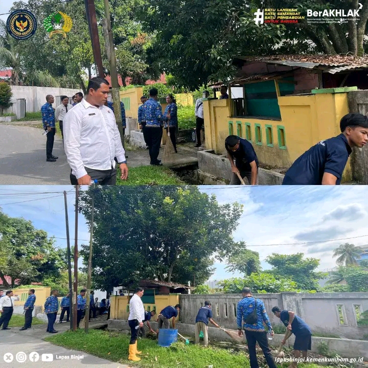 Sebagai bagian dari rangkaian kegiatan, jajaran pejabat struktural dan petugas Kementerian Imigrasi dan Pemasyarakatan turun langsung melaksanakan aksi sosial berupa pembenahan dan pembersihan Mushalla Al-Ikhlas. Kegiatan tersebut meliputi perbaikan saluran drainase, pengecatan, serta penataan ulang area ibadah agar lebih bersih, nyaman, dan layak dimanfaatkan masyarakat sekitar.