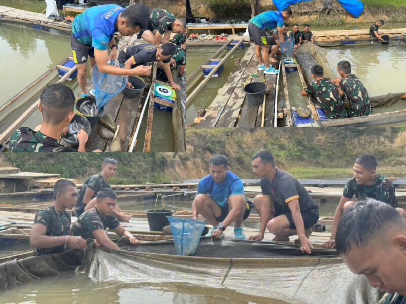 Komandan Yonif TP 855/RD, Letkol Inf Irvan Nugraha Rodin, S.I.P., M.Tr.(Mil)., memimpin langsung panen di kolam budidaya satuan. Beliau secara simbolis menebar jala, menandai keberhasilan pengelolaan budidaya yang bertujuan memenuhi kebutuhan protein internal dan masyarakat sekitar. Dalam sambutannya, Komandan menyampaikan apresiasi tinggi dan menegaskan bahwa kegiatan ini adalah cerminan semangat gotong royong dan komitmen satuan dalam memperkuat ketahanan pangan.