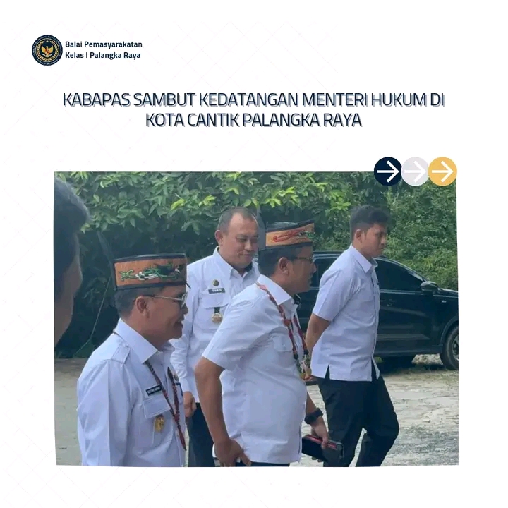 TIMELINES INEWS INVESTIGASI, Palangka Raya Kepala Balai Pemasyarakatan (Kabapas) Kelas I Palangka Raya, Theo Adrianus, turut serta menyambut kedatangan Menteri Hukum Republik Indonesia di Kota Cantik Palangka Raya, Kalimantan Tengah, Rabu (05/11/2025). Kehadiran Kabapas menjadi bentuk dukungan nyata terhadap agenda penting Menteri Hukum dalam rangka peresmian Pos Bantuan Hukum (Posbakum) di wilayah Kalimantan Tengah.
