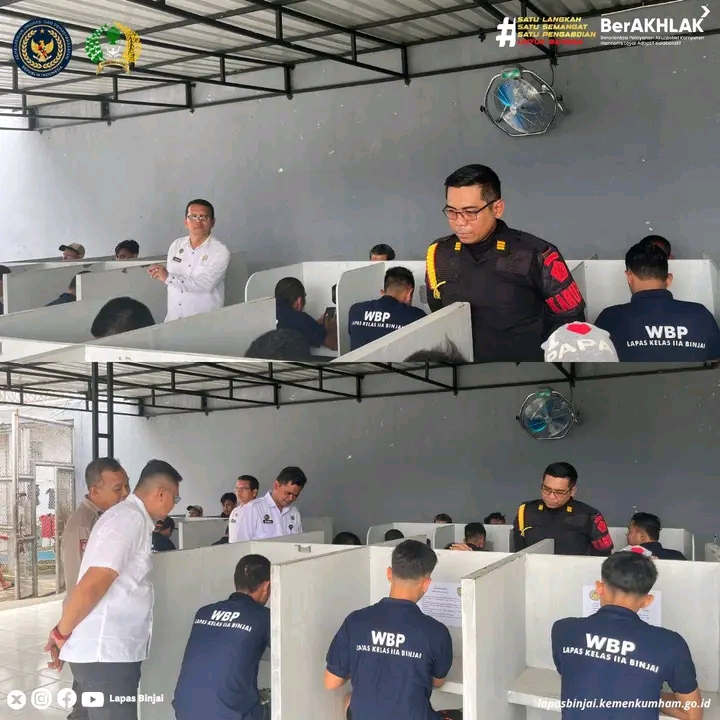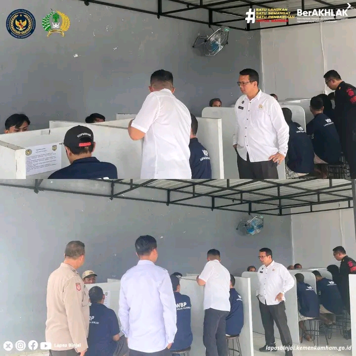 Pemasyarakatan (Kalapas) Kelas IIA Binjai, Wawan Irawan, didampingi pejabat struktural, Karupam, dan staf melakukan inspeksi mendadak terhadap penggunaan layanan Wartel Suspas di dalam Lapas Binjai, pada Rabu (12/11/2025).