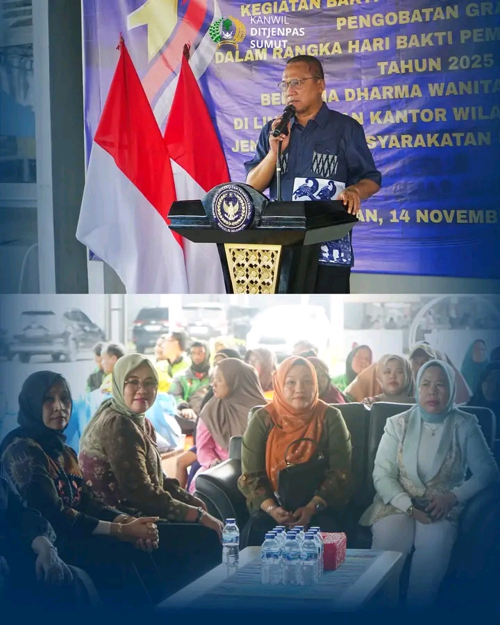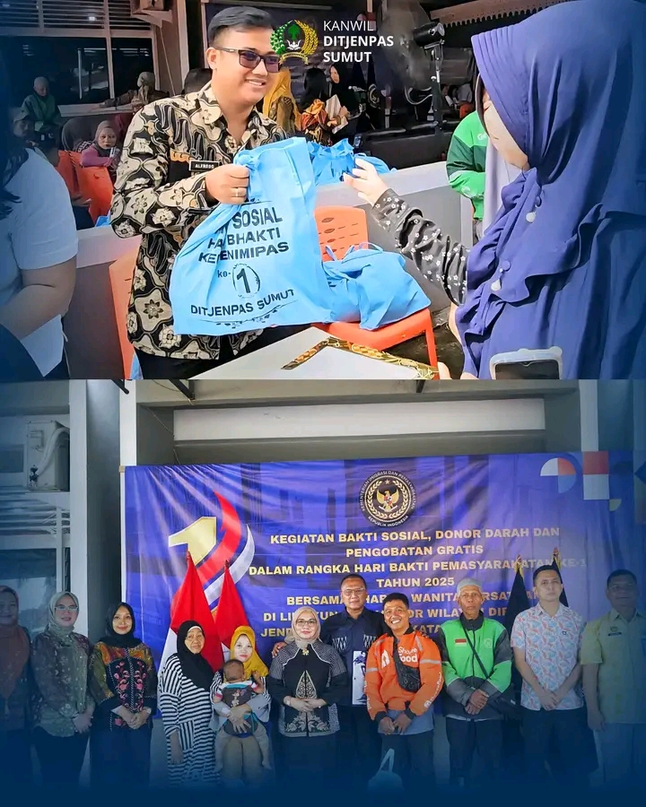 TIMELINES INEWS INVESTIGASI, Medan Dalam rangka memperingati Hari Bakti Kementerian Imigrasi dan Pemasyarakatan (Kemenimipas) Ke-1 Tahun 2025, Kantor Wilayah Direktorat Jenderal Pemasyarakatan Sumatera Utara (Kanwil Ditjenpas Sumut) menyelenggarakan rangkaian kegiatan IMIPAS Peduli, yang meliputi bakti sosial, donor darah, dan pengobatan gratis bagi masyarakat. Kegiatan ini berlangsung pada Jum’at (14/11) di lingkungan Kanwil Ditjenpas Sumut dan wilayah sekitar Tanjung Gusta.