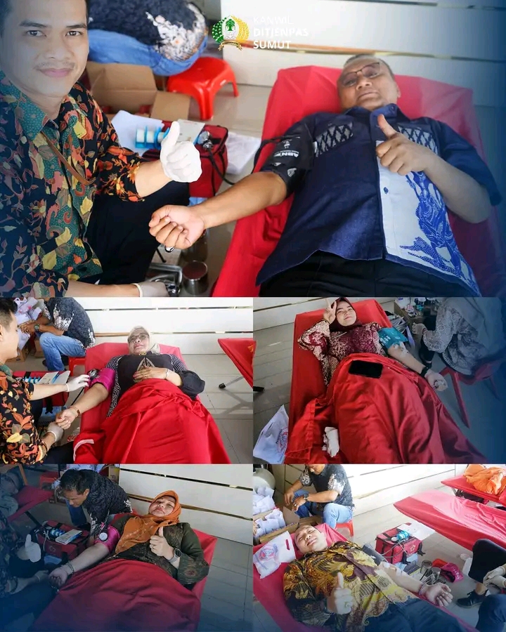 Selain bakti sosial, kegiatan donor darah turut menjadi bagian penting dari IMIPAS Peduli. Kanwil Ditjenpas Sumut bekerja sama dengan Palang Merah Indonesia (PMI) dalam pelaksanaan donor darah yang melibatkan pegawai, anggota DWP, serta masyarakat yang hadir. Kegiatan ini diharapkan dapat membantu memenuhi kebutuhan stok darah di PMI dan memberikan manfaat bagi pasien yang membutuhkan.