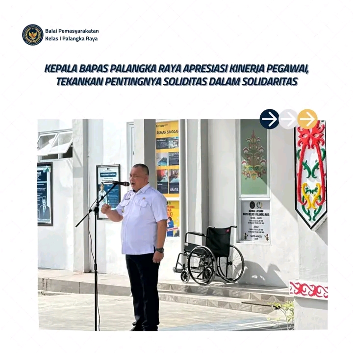 Kepala Balai Pemasyarakatan (Bapas) Palangka Raya, Theo Adrianus, menyampaikan apresiasi yang tinggi kepada seluruh jajaran pegawai atas kinerja, dedikasi, dan komitmen yang telah diberikan dalam melaksanakan tugas pemasyarakatan. Hal ini disampaikannya dalam arahan resmi kepada seluruh pegawai pada Senin (18/11/2025).