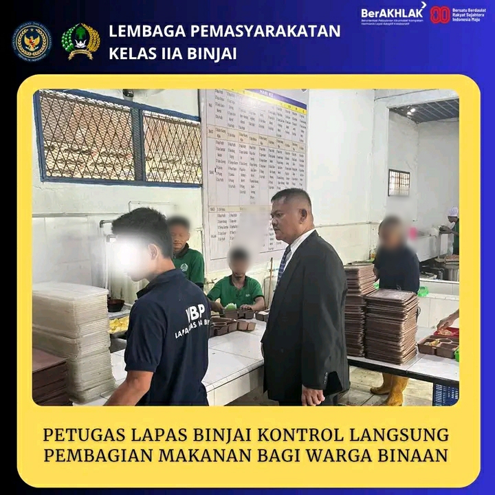 TIMELINES INEWS INVESTIGASI, Binjai Dalam upaya memastikan makanan yang disajikan kepada warga binaan tetap sehat dan bergizi, Kepala Seksi Bimbingan Narapidana & Anak Didik (Kasi Binadik) Lembaga Pemasyarakatan (Lapas) Kelas IIA Binjai, Andi Gultom, bersama jajaran Petugas Klinik yang dipimpin oleh Kasubsi Bimkemaswat Dion Sitorus, melakukan kontrol langsung ke dapur dan blok hunian Lapas, Senin (10/11/2025).