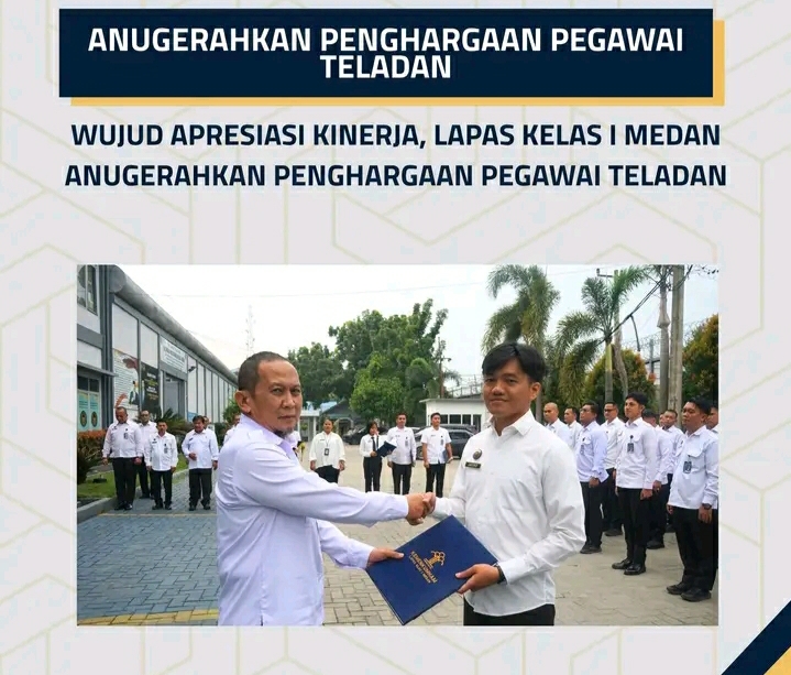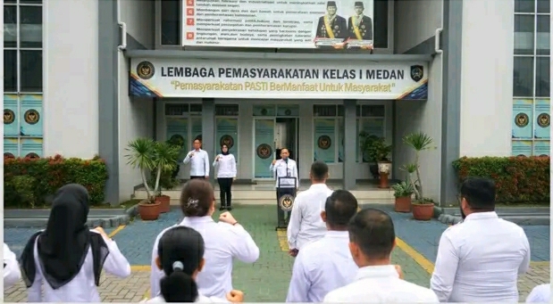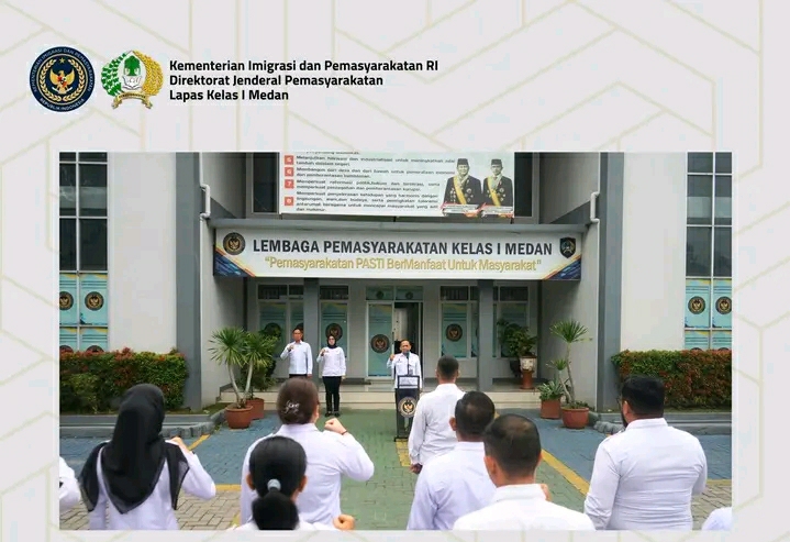 TIMELINES INEWS INVESTIGASI, Medan, Lembaga Pemasyarakatan (Lapas) Kelas I Medan melaksanakan apel pagi yang dirangkaikan dengan pemberian penghargaan kepada pegawai teladan periode Oktober, pada Senin (3/11/2025). Kegiatan tersebut diikuti oleh jajaran pejabat struktural dan staf pegawai Lapas Kelas I Medan sebagai wujud kedisiplinan serta komitmen dalam pelaksanaan tugas dan tanggung jawab.