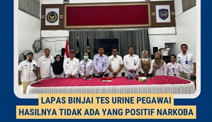 Lembaga Pemasyarakatan (Lapas) Kelas IIA Binjai melaksanakan kegiatan pengecekan urine bagi delapan puluh empat (84) pegawai sebagai langkah nyata dalam menjaga integritas dan menciptakan lingkungan kerja yang bersih dari penyalahgunaan narkoba. Kegiatan tersebut dipimpin langsung oleh Kepala Lapas Binjai, Wawan Irawan.