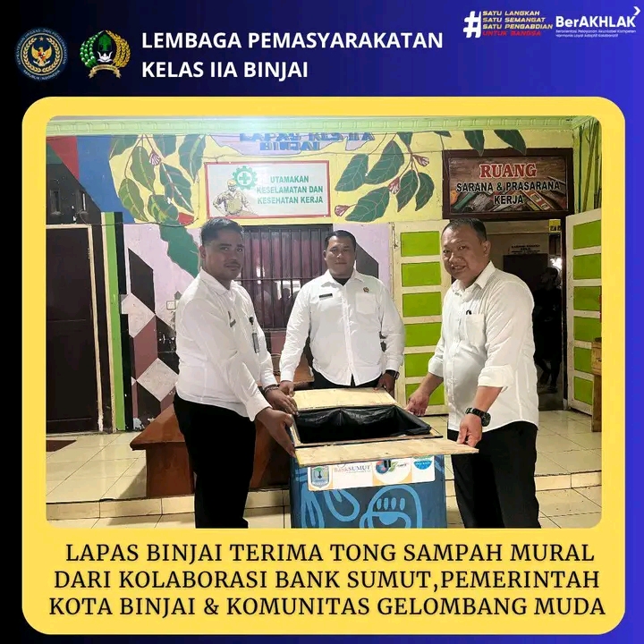 TIMELINES INEWS INVESTIGASI, Binjai, Rabu 13 November 2025 Lembaga Pemasyarakatan (Lapas) Kelas IIA Binjai menerima bantuan 125 unit tong sampah mural hasil kolaborasi antara Bank Sumut, Pemerintah Kota Binjai, dan komunitas anak muda kreatif Gelombang Muda.