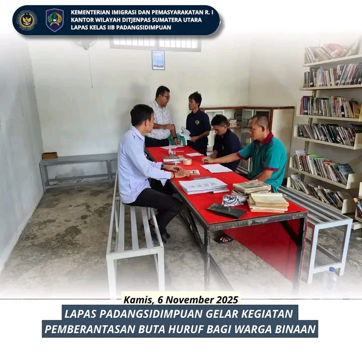 TIMELINES INEWS INVESTIGASI, Padangsidimpuan Lembaga Pemasyarakatan Kelas IIB Padangsidimpuan terus berkomitmen melaksanakan program pembinaan bagi warga binaan, salah satunya melalui kegiatan pemberantasan buta huruf yang digelar di ruang belajar Lapas, Kamis (6/11/2025).