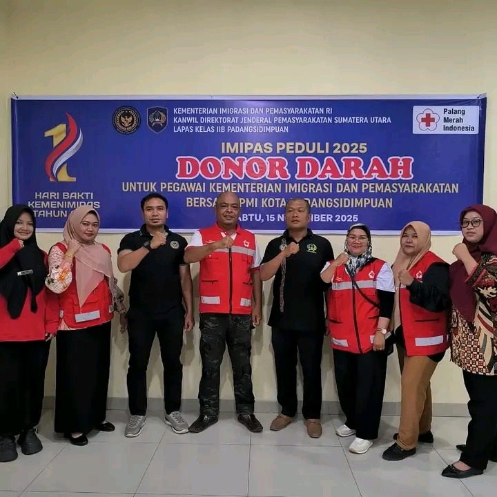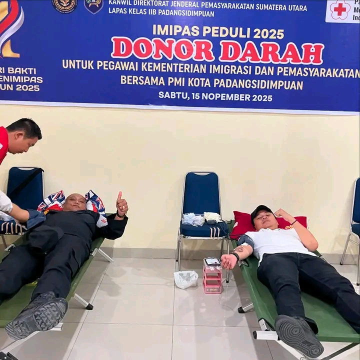 Kegiatan donor darah dilaksanakan di lingkungan Lapas Padangsidimpuan bekerja sama dengan Palang Merah Indonesia (PMI), Sabtu (15/11/2025). Seluruh jajaran lapas turut berpartisipasi aktif sebagai pendonor. Selain itu, antusiasme tinggi terlihat dari pegawai dan staf yang dengan sukarela mendaftarkan diri untuk mendonorkan darah mereka.
