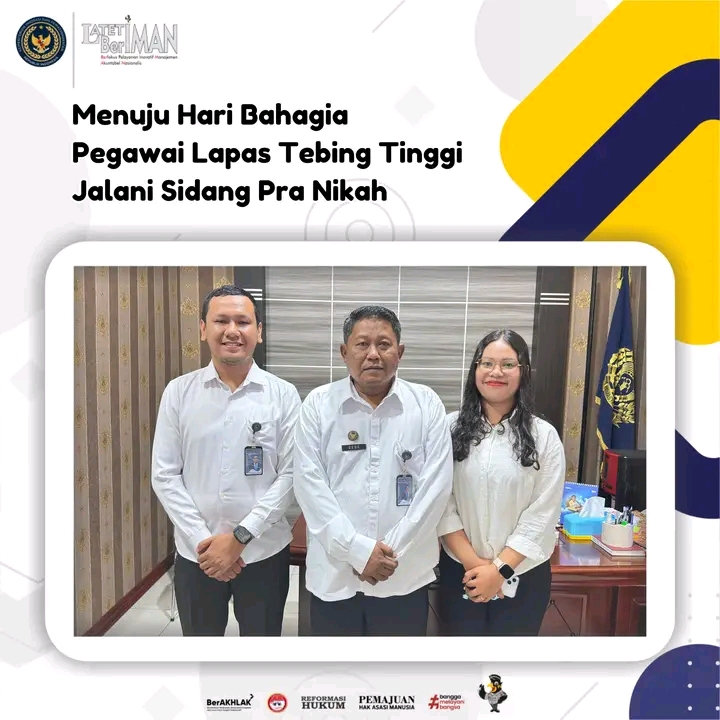 TIMELINES INEWS INVESTIGASI, Tebing Tinggi Lembaga Pemasyarakatan (Lapas) Kelas IIB Tebing Tinggi menggelar sidang pra nikah bagi salah satu pegawainya, Bambang Triatmaja Saragih, bersama pasangannya, Tiurma Vanny Pangaribuan, pada hari ini (18/11). Kegiatan berlangsung di ruang kerja Kalapas Tebing Tinggi dengan suasana tertib, khidmat, dan penuh kehangatan.
