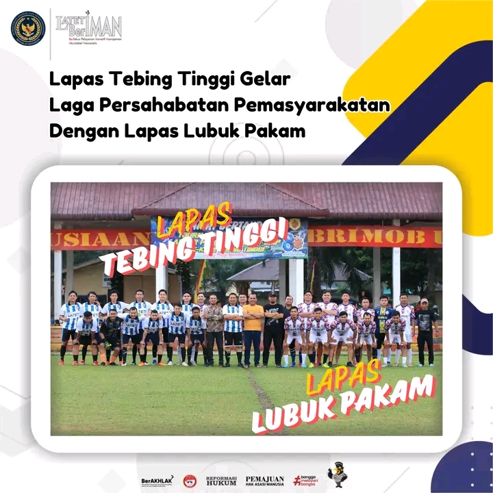 TIMELINES INEWS INVESTIGASI, Tebing Tinggi Lembaga Pemasyarakatan (Lapas) Kelas IIB Tebing Tinggi menggelar pertandingan persahabatan sepak bola melawan tim Lapas Lubuk Pakam pada Jumat sore (21/11) di Lapangan Sepak Bola Batalyon B Brimob Polda Sumut Kota Tebing Tinggi. Laga berlangsung penuh sportivitas dan menjadi ajang mempererat silaturahmi antarpetugas pemasyarakatan.
