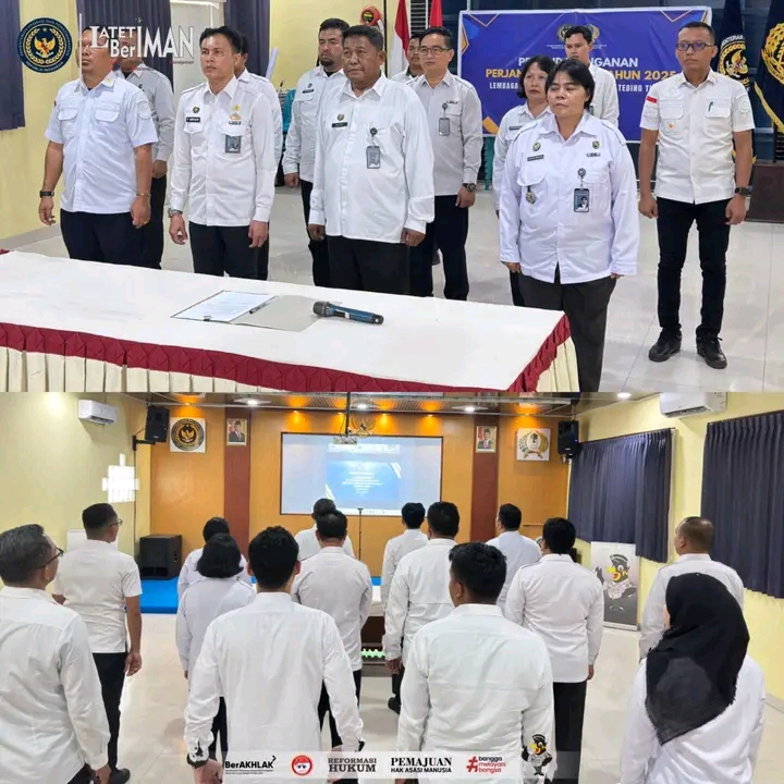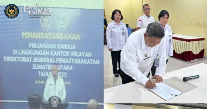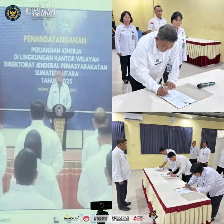 TIMELINES INEWS INVESTIGASI, Tebing Tinggi Lembaga Pemasyarakatan (Lapas) Kelas IIB Tebing Tinggi turut berpartisipasi dalam kegiatan Penandatanganan Perjanjian Kinerja di lingkungan Kantor Wilayah Direktorat Jenderal Pemasyarakatan (Ditjenpas) Sumatera Utara pada Selasa, 18 November 2025. Acara yang dimulai pukul 09.45 WIB ini dipusatkan di Aula Sasana Tama Lapas Tebing Tinggi dan diikuti secara virtual oleh seluruh satuan kerja pemasyarakatan se-Sumatera Utara.