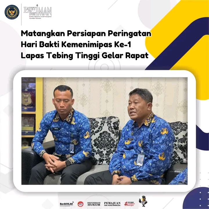 TIMELINES INEWS INVESTIGASI, Tebing Tinggi Lembaga Pemasyarakatan (Lapas) Kelas IIB Tebing Tinggi menggelar rapat pematangan persiapan dalam rangka menyambut Hari Bakti Kementerian Imigrasi dan Pemasyarakatan ke-1. Rapat berlangsung di ruang kerja Kalapas dan diikuti para pejabat struktural dan panitia pelaksana kegiatan.