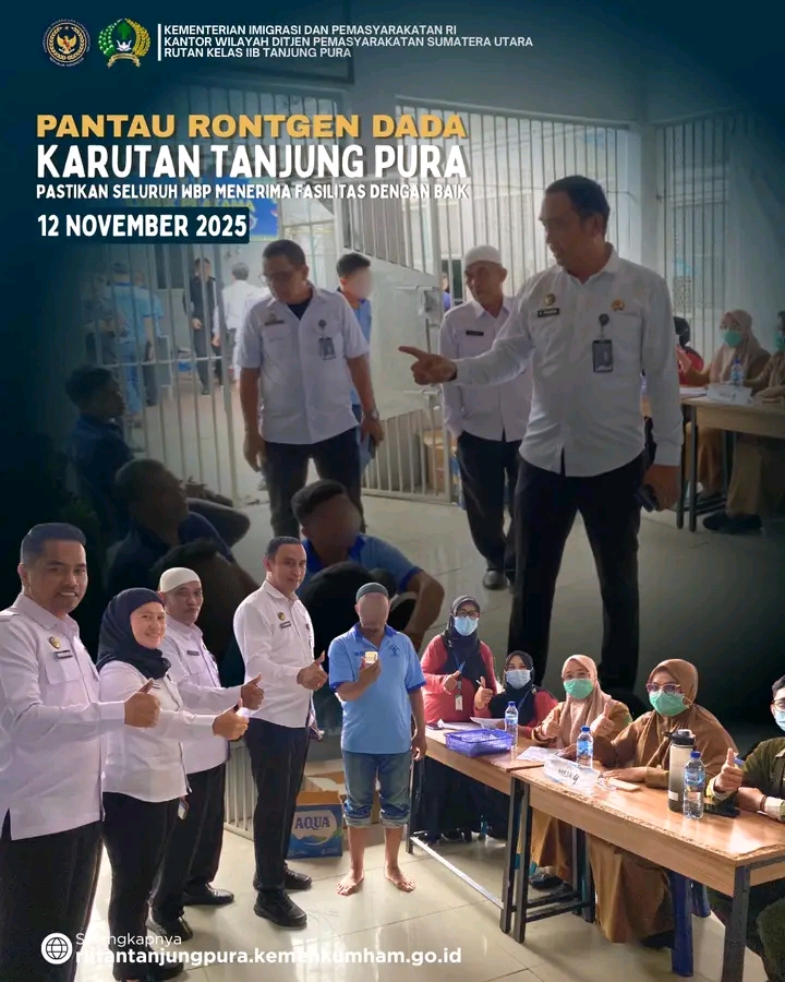 Kegiatan ini merupakan program Kementerian Imigrasi dan Pemasyarakatan dimana Rutan Tanjung Pura bekerjasama dengan Dinas Kesehatan dan Puskesmas Pantai Cermin dalam upaya penanggulangan penyakit menular. Kegiatan ini dilaksanakan selama 3 hari dengan memeriksa 651 warga binaan dimana hasil rontgen yang menunjukkan indikasi TBC akan dilakukan pemeriksaan lanjutan berupa tes dahak untuk memastikan diagnosis lebih akurat.
