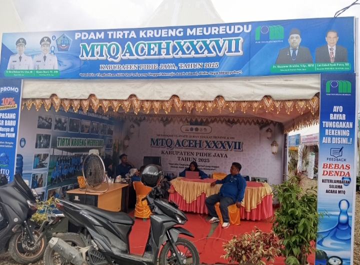 TLii. Pidie Jaya – PDAM Tirta Krueng Meureudu turut berpartisipasi dalam pelaksanaan Musabaqah Tilawatil Quran (MTQ) Aceh ke-37 Tahun 2025 yang digelar di Kabupaten Pidie Jaya. Partisipasi tersebut diwujudkan melalui pembukaan stan layanan publik dan sosialisasi program PDAM kepada masyarakat di arena utama MTQ.