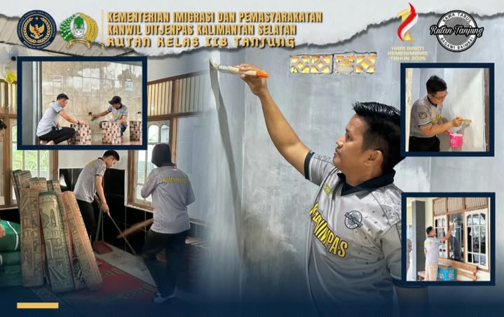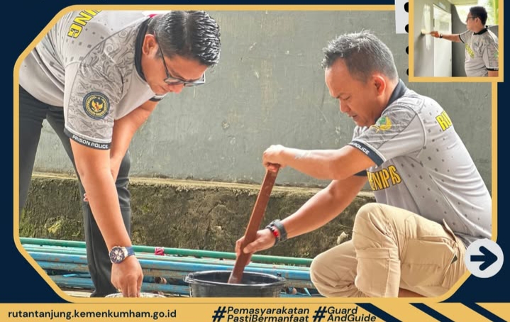 Program ini menjadi bagian dari rangkaian peringatan Hari Bakti Kementerian Imigrasi dan Pemasyarakatan ke-1, dengan fokus pada perbaikan sarana-prasarana umum melalui pengecatan serta pembersihan area ibadah. Seluruh jajaran petugas Rutan Tanjung turut terlibat, bekerja sama sesuai tugas masing-masing.