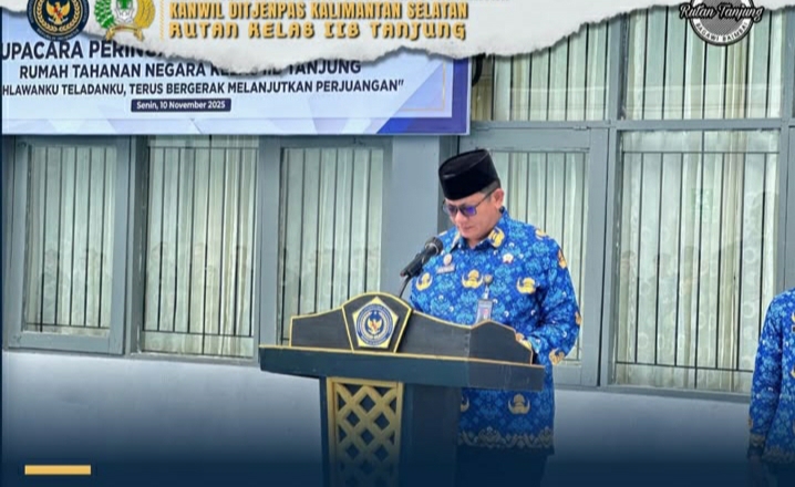 TIMELINES INEWS INVESTIGASI, Tanjung Dalam rangka memperingati Hari Pahlawan Nasional Tahun 2025, Rumah Tahanan Negara (Rutan) Kelas IIB Tanjung melaksanakan upacara bendera dengan penuh khidmat dan semangat nasionalisme, Senin (10/11/2025).
