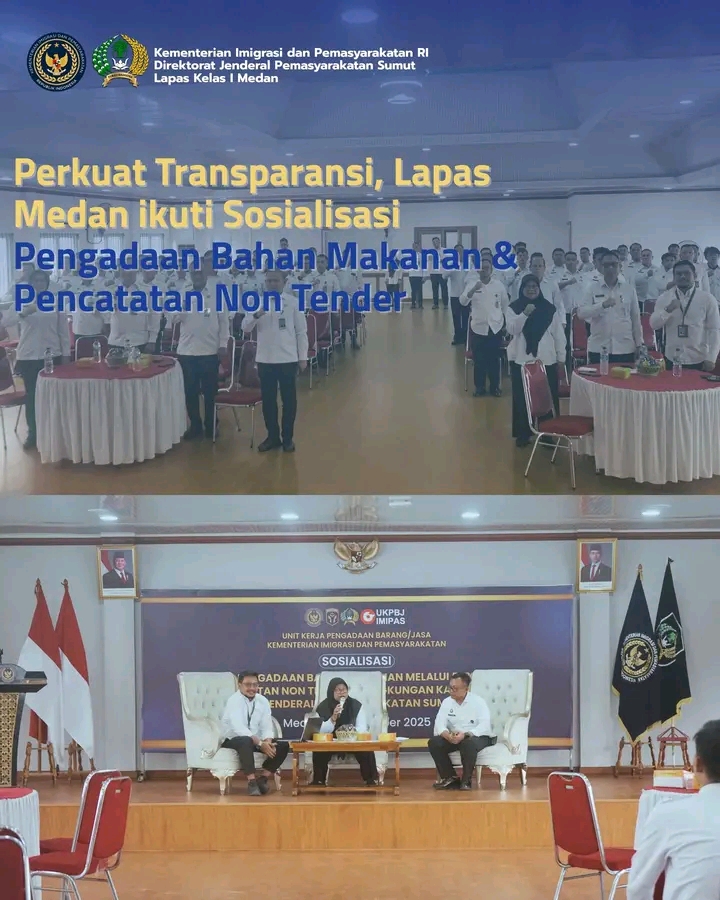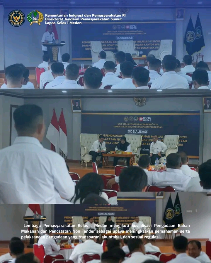 TIMELINES INEWS INVESTIGASI, Medan, Lembaga Pemasyarakatan Kelas I Medan mengikuti Sosialisasi Pengadaan Bahan Makanan dan Pencatatan Non Tender yang diselenggarakan pada Rabu, 19 November 2025, sebagai upaya meningkatkan pemahaman serta pelaksanaan pengadaan yang transparan, akuntabel, dan sesuai regulasi.