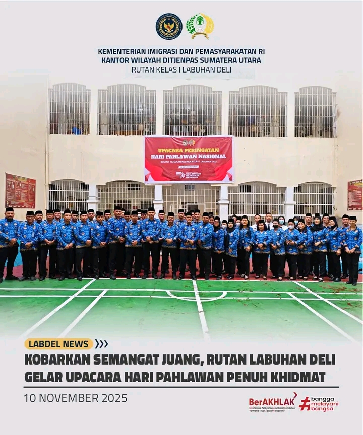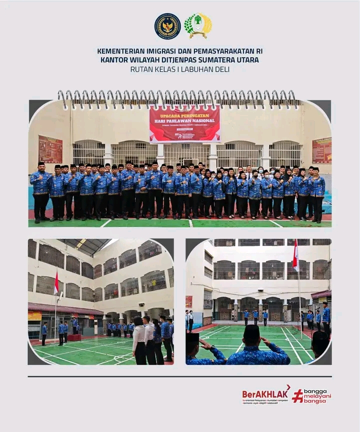 Upacara yang mengusung tema “Pahlawanku Teladanku, Terus Bergerak, Melanjutkan Perjuangan” ini dipimpin langsung oleh Kepala Rutan Kelas I Labuhan Deli, Eddy Junaedi, selaku pembina upacara. Kegiatan diikuti oleh pejabat struktural, jajaran pegawai, serta perwakilan warga binaan dengan penuh semangat dan rasa hormat kepada para pahlawan bangsa.