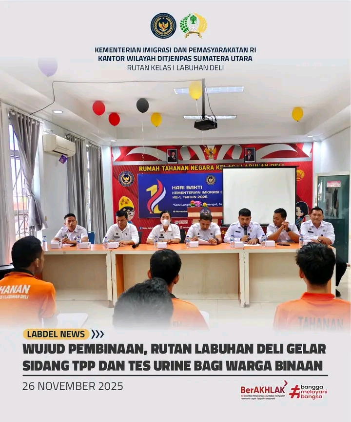 TIMELINES INEWS INVESTIGASI, Labuhan Deli Sebanyak 17 orang Warga Binaan Pemasyarakatan (WBP) Rumah Tahanan Negara (Rutan) Kelas I Labuhan Deli mengikuti Sidang Tim Pengamat Pemasyarakatan (TPP) yang digelar di Ruang Moralitas lantai 2 Rutan Labuhan Deli, Rabu (26/11/2025).