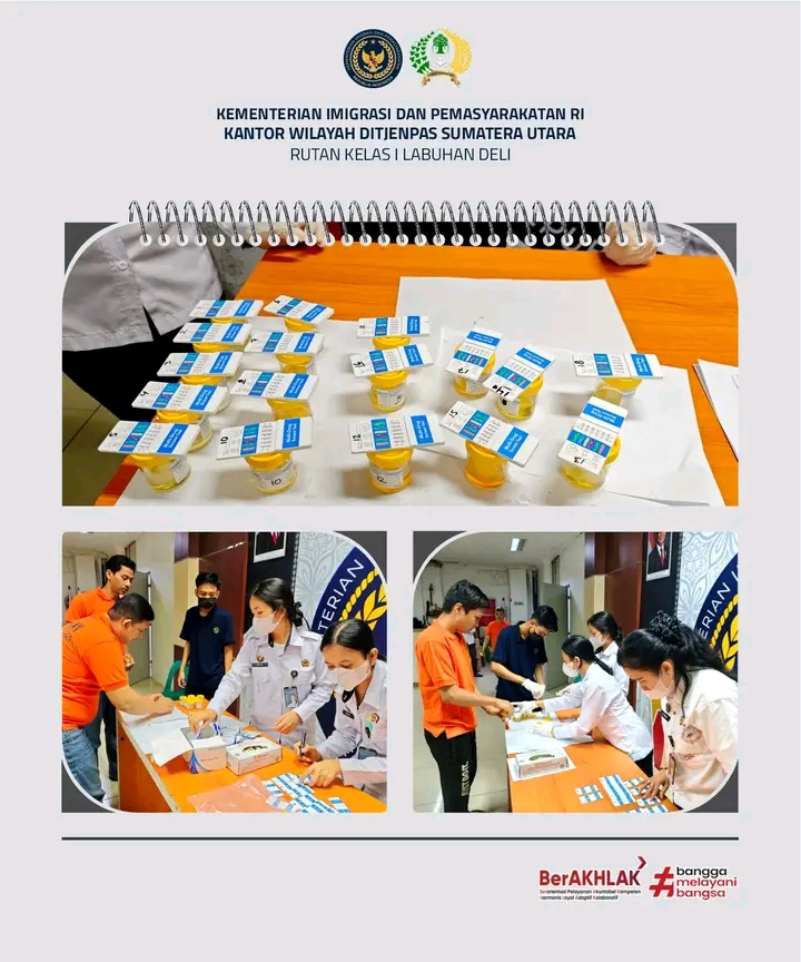 Setelah pelaksanaan sidang, kegiatan dilanjutkan dengan tes urine bagi seluruh peserta sidang TPP yang dilakukan oleh tim medis Rutan Labuhan Deli. Langkah ini merupakan bagian dari komitmen pencegahan dan penanggulangan penyalahgunaan narkoba di lingkungan Rutan.