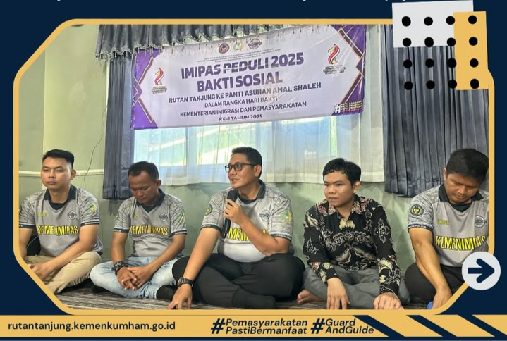 TIMELINES INEWS INVESTIGASI, Tanjung Wujud nyata kepedulian dan semangat berbagi kembali ditunjukkan Rumah Tahanan Negara (Rutan) Kelas IIB Tanjung melalui kegiatan bakti sosial yang dilaksanakan di dua lokasi berbeda, yaitu lingkungan sekitar Rutan dan Panti Asuhan Amal Shaleh. Kegiatan ini digelar dalam rangka memperingati Hari Bakti Kementerian Imigrasi dan