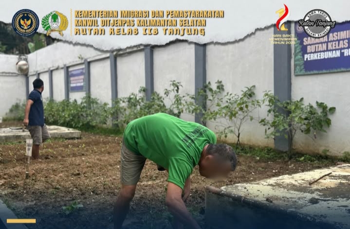 TIMELINES INEWS INVESTIGASI, Tanjung Dalam upaya menjaga kualitas tanaman sekaligus memastikan hasil panen yang optimal, Rumah Tahanan Negara (Rutan) Kelas IIB Tanjung melalui program Sarana Asimilasi dan Edukasi (SAE) terus melaksanakan perawatan rutin di area kebun pembinaan.