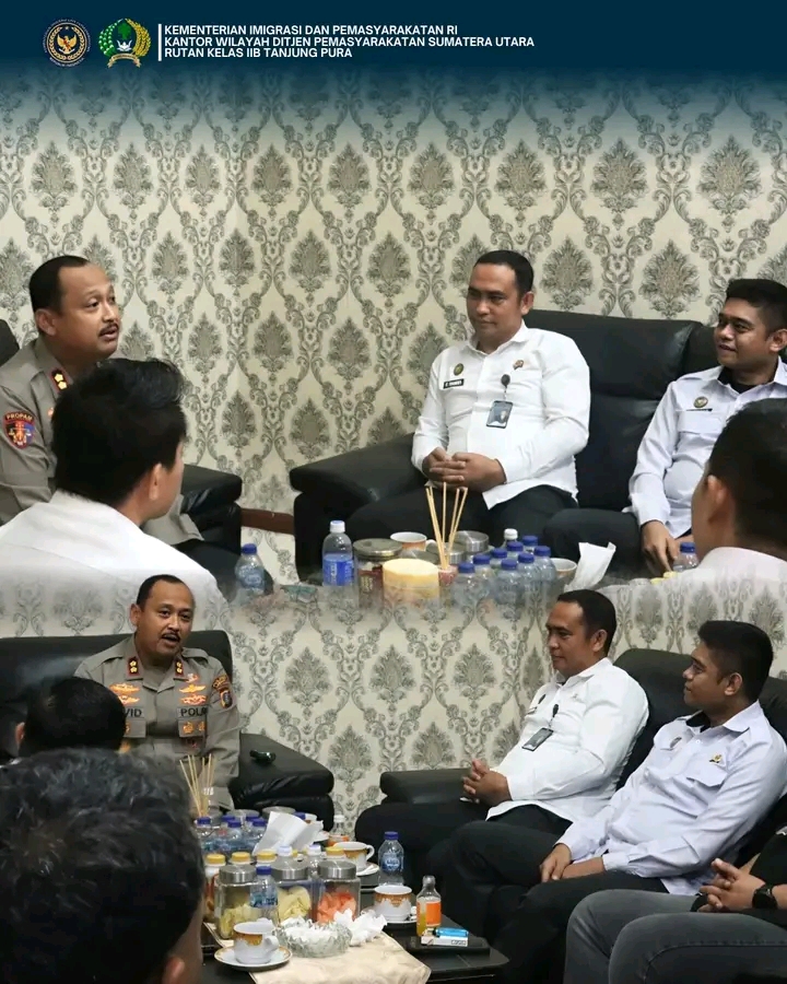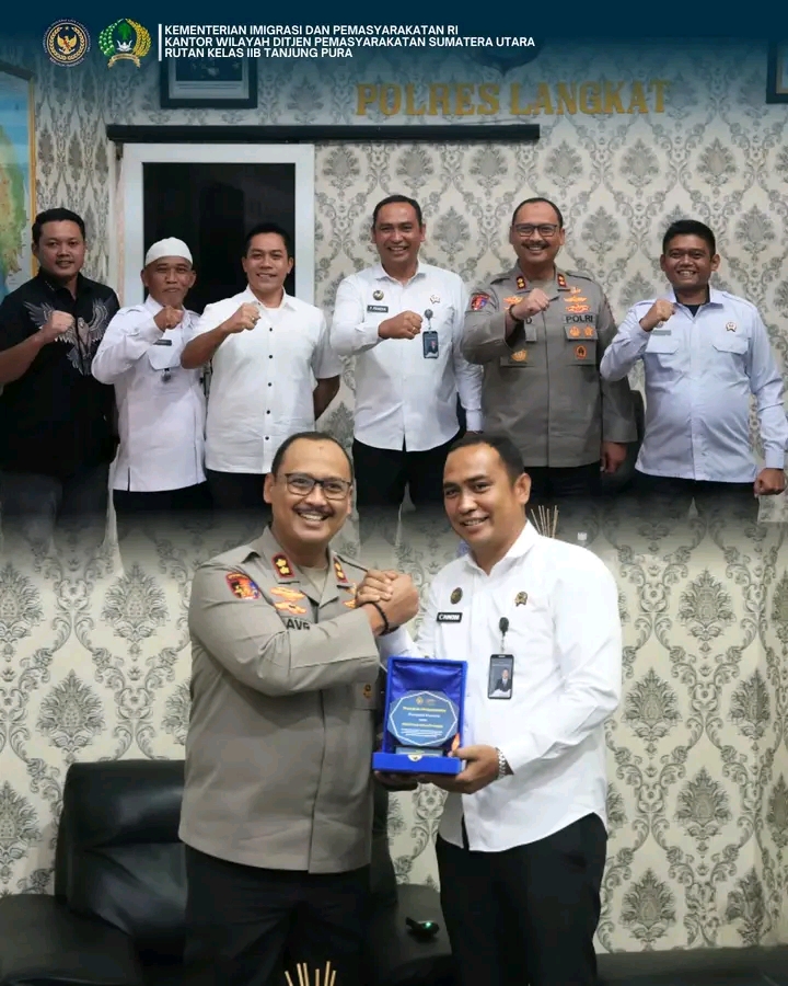 TIMELINES INEWS INVESTIGASI, Langkat Kepala Rumah Tahanan Negara (Rutan) Kelas IIB Tanjung Pura beserta rombongan dari Rutan Pangkalan Brandan melakukan kunjungan silaturahmi ke Polres Langkat, Selasa (04/11/2025). Kegiatan ini bertujuan mempererat hubungan antarinstansi serta menjalin sinergitas yang lebih solid.