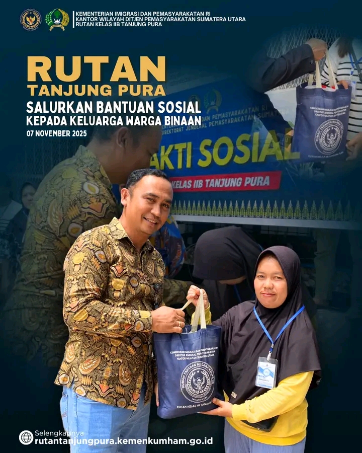 TIMELINES INEWS INVESTIGASI, Tanjung Pura Rumah Tahanan Negara Kelas IIB Tanjung Pura kembali menyalurkan bantuan sosial kepada keluarga warga binaan sebagai bentuk kepedulian serta implementasi program akselerasi menteri imigrasi dan pemasyarakatan. Jumat (07/11)
