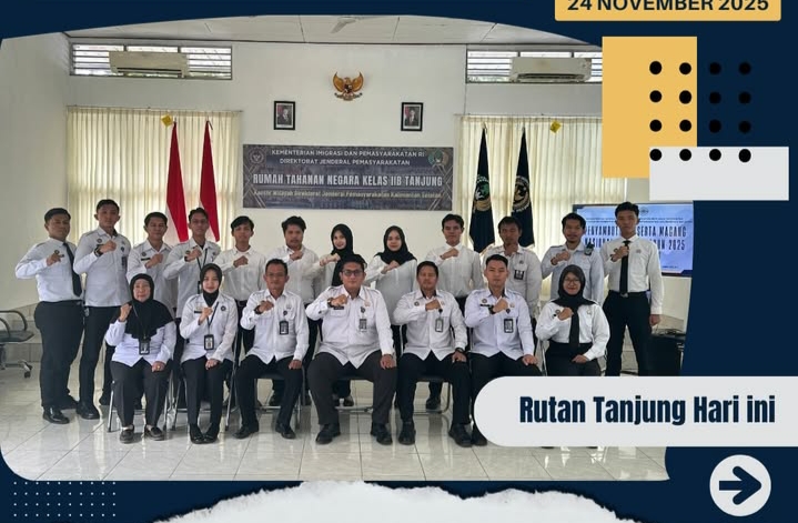 TIMELINES INEWS INVESTIGASI, Tanjung Rumah Tahanan Negara (Rutan) Kelas IIB Tanjung secara resmi menyambut enam peserta magang dalam kegiatan pembukaan Program Magang Nasional bertempat di Ruang Aula G.G. Van Delft, Senin (24/11/2025). Program ini merupakan bagian dari inisiatif Kementerian Ketenagakerjaan Republik Indonesia (Kemnaker RI) untuk meningkatkan kompetensi sumber daya manusia, khususnya pada bidang ketenagakerjaan dan pembinaan masyarakat.