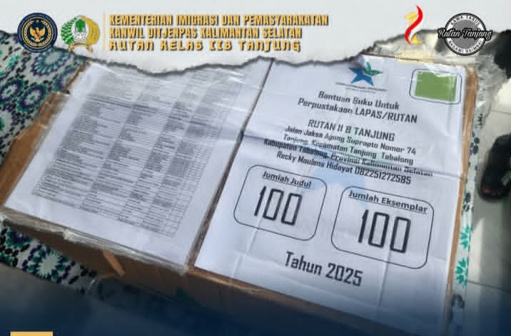 TIMELINES INEWS INVESTIGASI, Tanjung, 22 November 2025 Rumah Tahanan Negara (Rutan) Kelas IIB Tanjung menerima bantuan sebanyak 100 eksemplar buku dari Perpustakaan Nasional Republik Indonesia (Perpusnas RI). Bantuan ini diberikan sebagai dukungan nyata dalam meningkatkan literasi dan minat baca warga binaan.