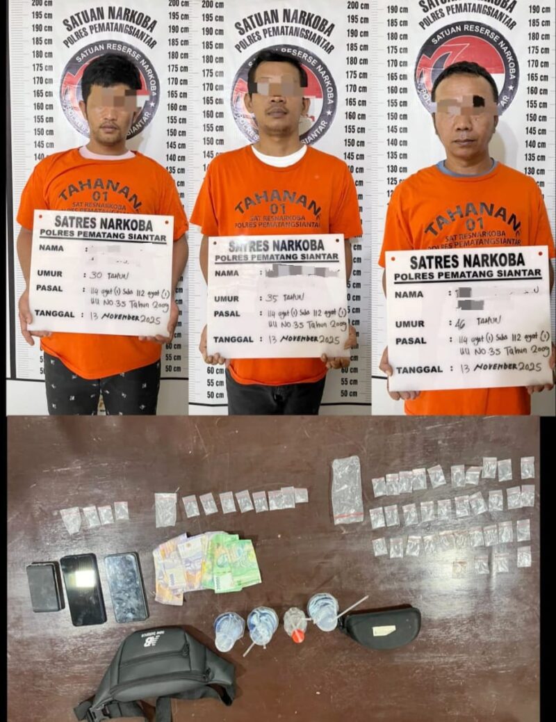 Kali ini, pada Kamis 13 November 2025 sekira pukul 13.30 WIB menangkap tiga (3) orang laki laki miliki narkotika jenis sabu berat bruto 18,1 gram di dalam rumah Jalan Sibatu-batu Gang Pulau Batu Kelurahan Bah Kapul Kecamatan Siantar Sitalasari Kota Pematangsiantar.