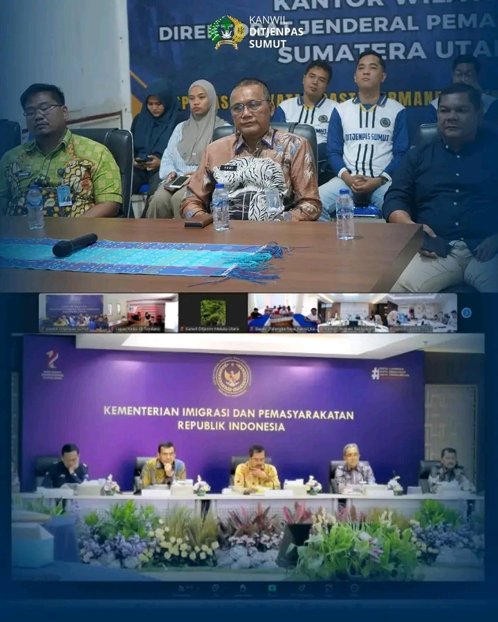TIMELINES INEWS INVESTIGASI, Medan Kantor Wilayah Direktorat Jenderal Pemasyarakatan Sumatera Utara turut berpartisipasi dalam kegiatan Kick Off Peringatan Hari Bakti Kementerian Imigrasi dan Pemasyarakatan (Kemenimipas) ke-1 Tahun 2025, yang dilaksanakan secara virtual dan dipimpin langsung oleh Menteri Imigrasi dan Pemasyarakatan, Agus Andrianto, bersama jajaran Pimpinan Tinggi Madya dan Pratama Kemenimipas di seluruh Indonesia, pada Jum’at (07/11).