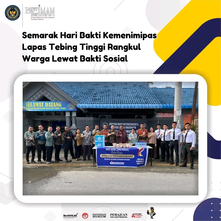 Kepala Lapas Tebing Tinggi Dede Mulyadi melalui kegiatan ini, menegaskan bahwa semangat Hari Bakti Kemenimipas sebagai momentum untuk memperkuat solidaritas, kepedulian sosial, serta hubungan yang harmonis antara petugas pemasyarakatan dan masyarakat.