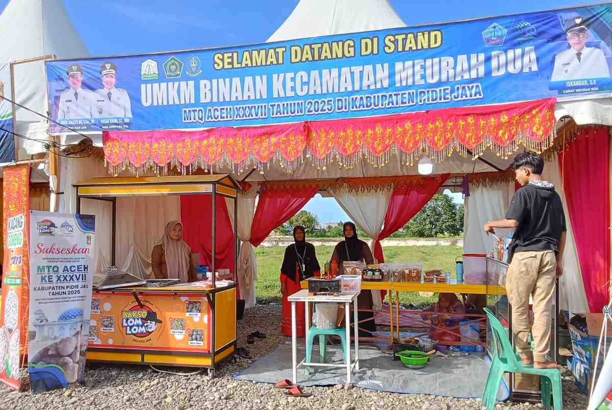 TLii >>> Meureudu – Suasana semarak Musabaqah Tilawatil Qur’an (MTQ) Aceh ke-37 di Kabupaten Pidie Jaya tak hanya terasa di arena perlombaan, tetapi juga di deretan stand Usaha Mikro, Kecil, dan Menengah (UMKM) yang berdiri megah di sekitar lokasi utama. Lima hari sejak dibukanya ajang bergengsi tersebut, para pelaku UMKM binaan Pemerintah Kabupaten Pidie Jaya benar-benar ketiban rezeki.