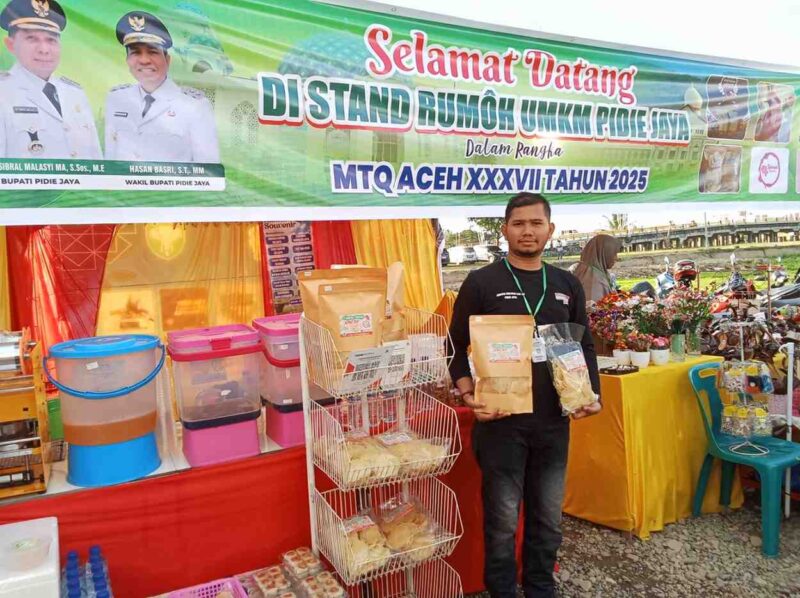 TLii >>> Meureudu – Suasana semarak Musabaqah Tilawatil Qur’an (MTQ) Aceh ke-37 di Kabupaten Pidie Jaya tak hanya terasa di arena perlombaan, tetapi juga di deretan stand Usaha Mikro, Kecil, dan Menengah (UMKM) yang berdiri megah di sekitar lokasi utama. Lima hari sejak dibukanya ajang bergengsi tersebut, para pelaku UMKM binaan Pemerintah Kabupaten Pidie Jaya benar-benar ketiban rezeki.
