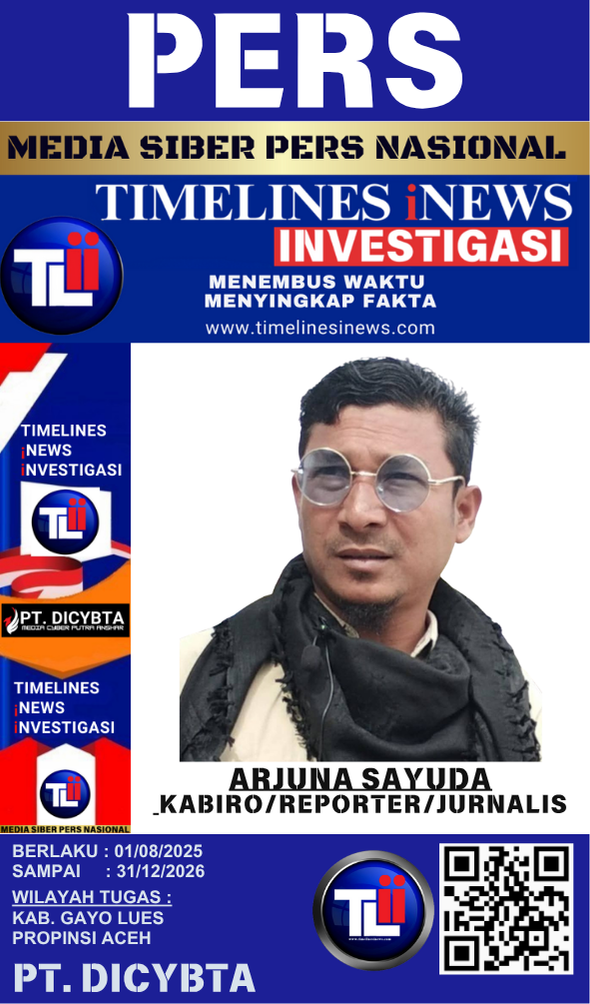 Wartawan Media Cyber Pers Nasional Timelines iNews iNvestigasi (TLii) dalam menjalankan tugas liputannya selalu dibekali kartu Pers, surat tugas serta namanya tercantum di dalam Bok Redaksi.