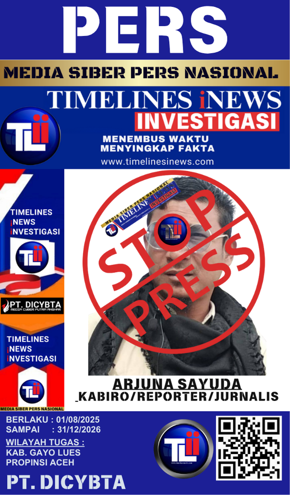 Wartawan Media Cyber Pers Nasional Timelines iNews iNvestigasi (TLii) dalam menjalankan tugas liputannya selalu dibekali kartu Pers, surat tugas serta namanya tercantum di dalam Bok Redaksi.