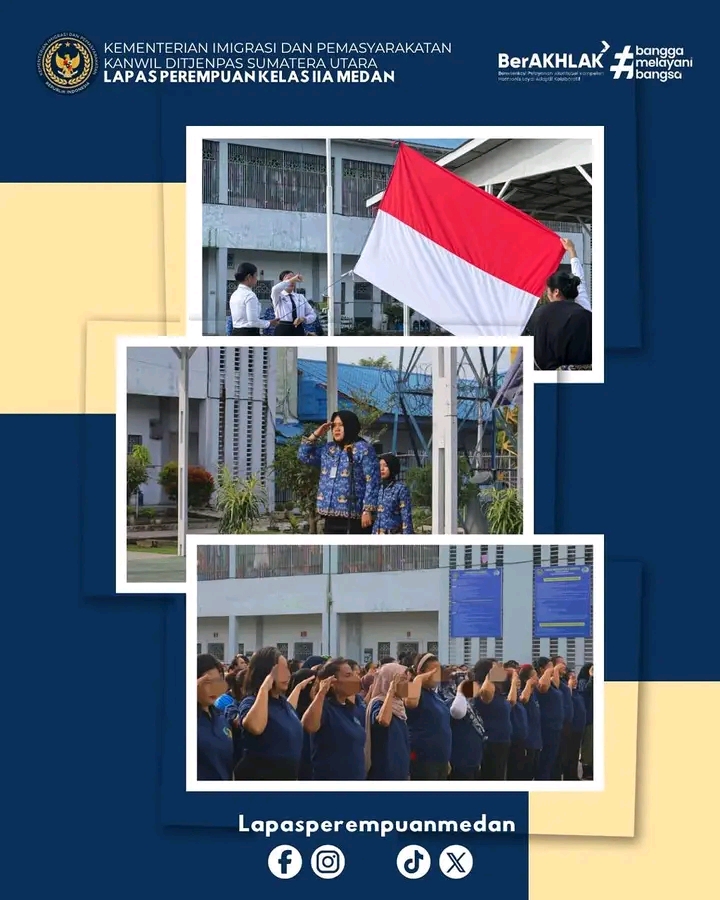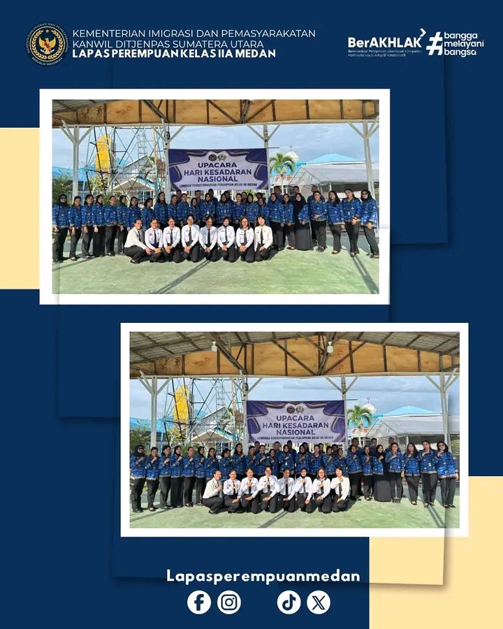 TIMELINES INEWS INVESTIGASI, Medan, 17 November 2025 Lembaga Pemasyarakatan (Lapas) Kelas IIA Perempuan Medan (Laperdan) menggelar Upacara Hari Kesadaran Nasional (HKN) di Lapangan Upacara Laperdan dengan penuh khidmat, Senin (17/11). Kegiatan ini diikuti oleh seluruh Warga Binaan Pemasyarakatan (WBP) sebagai bagian dari agenda nasional yang wajib dilaksanakan serentak di seluruh Indonesia setiap tanggal 17 setiap bulannya.
