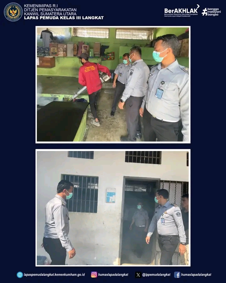 “Dengan adanya pelaksanaan fogging di area Lapas Pemuda Langkat, diharapkan dapat mencegah adanya bibit-bibit penyakit demam berdarah dengue dan penyakit lainnya. Sehingga pemenuhan hak kesehatan warga binaan pemasyarakatan Lapas Pemuda Langkat dapat optimal,” harapnya..