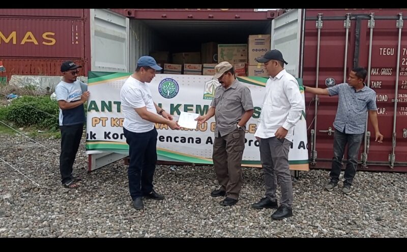 TLii|Aceh|Aceh Utara— Bantuan logistik untuk korban bencana hidrometeorologi di Kabupaten Bener Meriah dan Aceh Tengah (Takengon) tiba di Pelabuhan Krueng Geukuh, Aceh Utara, Minggu (28/12/2025). Bantuan tersebut disalurkan oleh PT Kencana Hijau Bina Lestari dan selanjutnya akan didistribusikan ke wilayah terdampak melalui Badan Penanggulangan Bencana Aceh (BPBA).