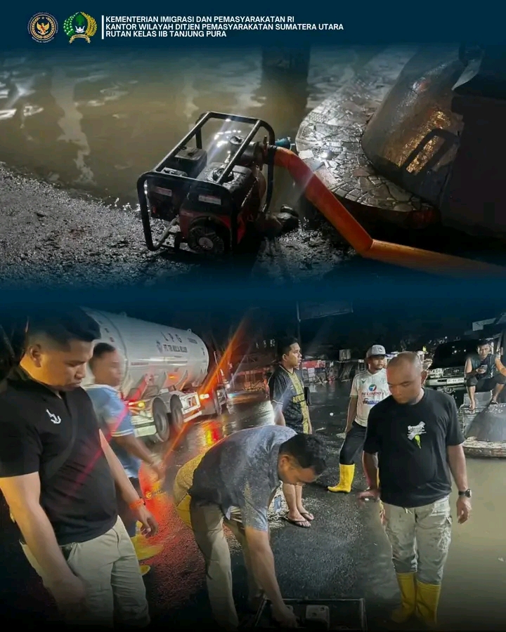 Menindaklanjuti situasi tersebut, Kepala Rutan Tanjung Pura Fransisco Pandia bersama seluruh jajarannya langsung turun ke lapangan untuk memastikan proses pembersihan dapat dilakukan secara cepat, terarah, dan tetap memperhatikan standar keamanan. Para tamping juga turut dilibatkan sebagai bagian dari kolaborasi dan kerja sama dalam menjaga kebersihan serta ketertiban lingkungan Rutan.