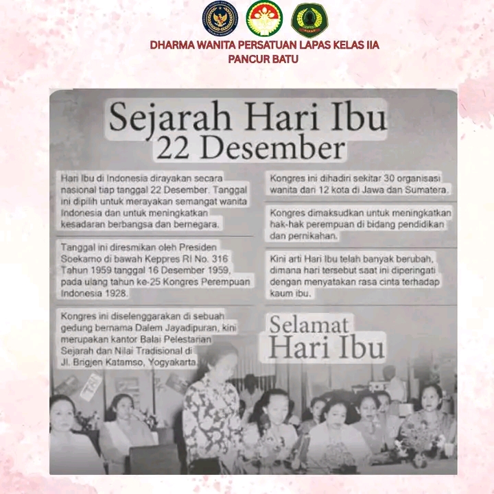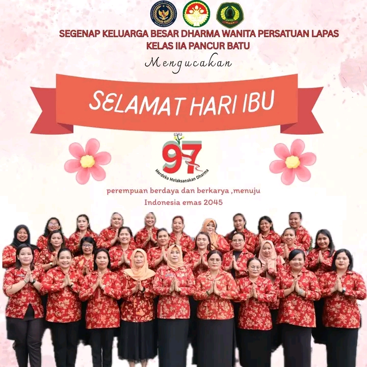 TIMELINES INEWS INVESTIGASI, Lapas Pancur Batu Dalam rangka memperingati Hari Ibu ke-97 Tahun 2025, Ketua Dharma Wanita Persatuan (DWP) Lembaga Pemasyarakatan Kelas IIA Pancur Batu, Ny. Andi St. Tribowo, S.H., M.H., bersama seluruh Keluarga Besar DWP Lapas Kelas IIA Pancur Batu menyampaikan ucapan Selamat Hari Ibu yang jatuh pada 22 Desember 2025.