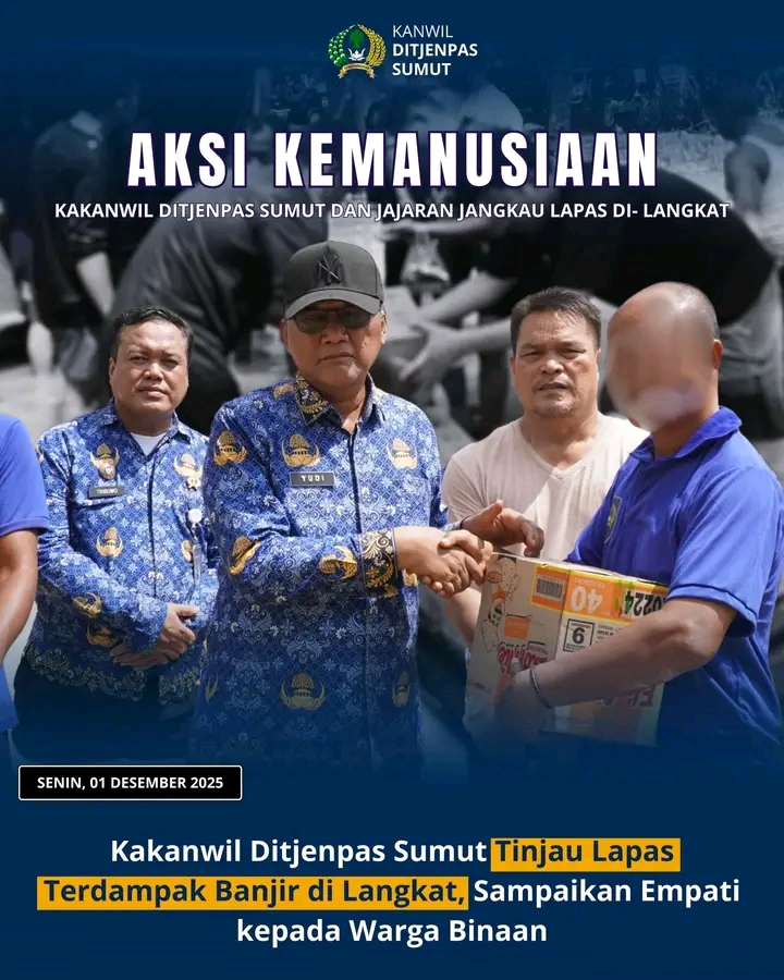 TIMELINES INEWS INVESTIGASI, Langkat Wujud kepedulian dan respon cepat terhadap kondisi darurat akibat bencana banjir, Kepala Kantor Wilayah Direktorat Jenderal Pemasyarakatan Sumatera Utara, Yudi Suseno, bersama jajaran melakukan peninjauan langsung ke sejumlah Unit Pelaksana Teknis Pemasyarakatan yang terdampak banjir di Kabupaten Langkat, pada Senin (01/12).