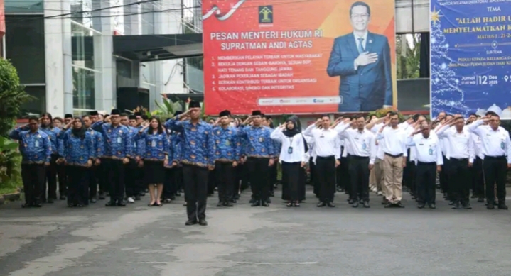 TIMELINES INEWS INVESTIGASI, Medan Kantor Wilayah Kementerian Hukum Sumatera Utara melaksanakan Upacara Bersama Peringatan Hari Bela Negara ke-77 Tahun 2025 di Lapangan Upacara Kanwil Kemenkum Sumut. Upacara ini diikuti oleh jajaran Kantor Wilayah Kementerian Hukum Sumatera Utara, Kantor Wilayah Direktorat Jenderal Imigrasi Sumatera Utara, Kantor Wilayah Kementerian HAM Sumatera Utara–Kepulauan Riau serta Balai Harta Peninggalan Medan, Jumat (19/12/2025).