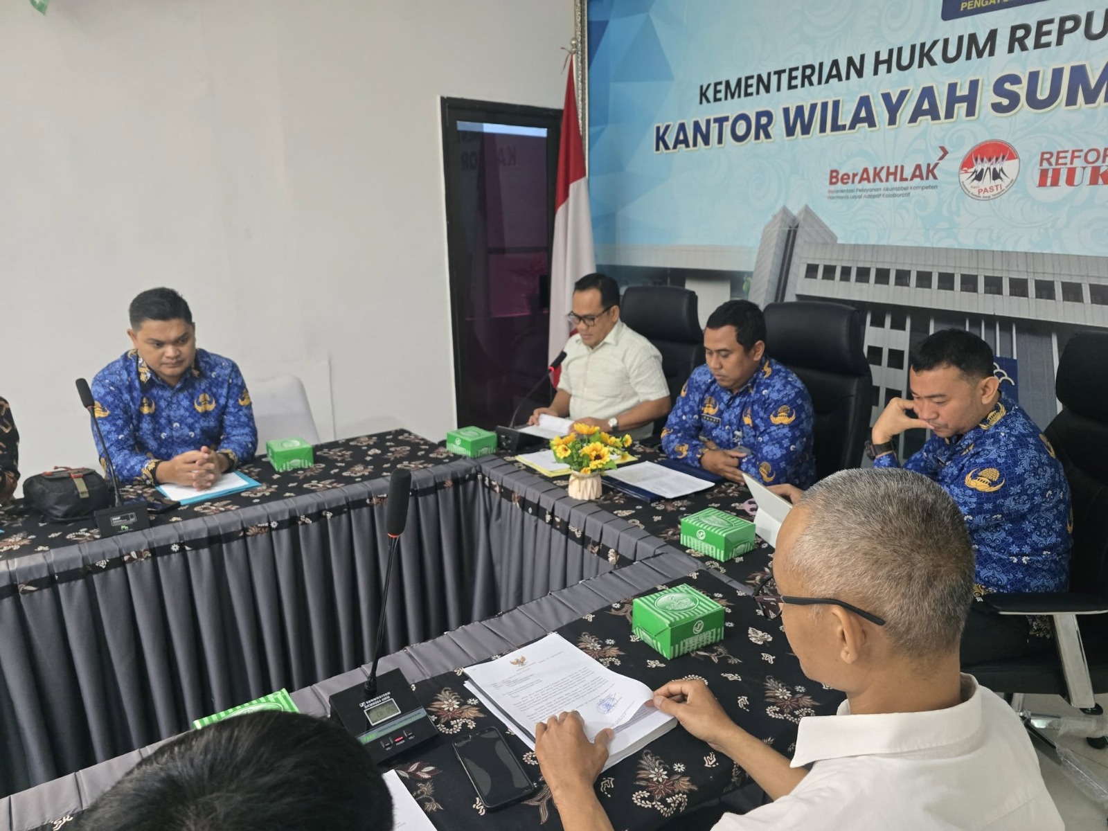 TIMELINES INEWS INVESTIGASI, Medan, 17 Desember 2025 Kantor Wilayah Kementerian Hukum (Kemenkum) Sumatera Utara menggelar rapat harmonisasi Rancangan Peraturan Bupati (Ranperbup) Kabupaten Asahan tentang perubahan regulasi pegawai Badan Layanan Umum Daerah (BLUD) pada UPTD RSUD Haji Abdul Manan Simatupang. Kegiatan ini berlangsung di Kantor Wilayah Kemenkum Sumatera Utara dan bertujuan untuk menyelaraskan produk hukum daerah agar tidak terjadi tumpang tindih peraturan serta memastikan kebijakan daerah sejalan dengan visi Pemerintah Pusat, khususnya program Asta Cita Presiden.
